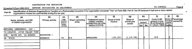 In addition it currently has two related entities (listed on Schedule R), one, the greatest income-producer is a CENIC LLC, and the other is a partnership (National Lambda Rail or such) listed as taxable as a corporation or partnership. So I am wondering when I look at the summary page of the tax returns and corresponding detail on Part IX (Statement of Expenses) as “lease” fees, whether these leases are to a for-profit LLC already owned by the same management.