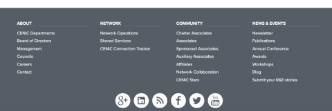 CENIC.org – Click image to enlarge if needed. See any link on this website footer which might show financial statements or tax returns (Forms 990)?