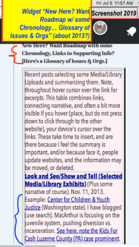 Pardon me for talking the medium (context: on-line platform/plural of “medium” is “media“;basic terms like “sidebar” or “widget”) before the message (widgets’ content), but I know understanding this — the basic parts and function of the parts on any website — also helps navigate other, far more complex websites, and quickly detect intentional obfuscation — roadblocks to self-identification by the funding entity.