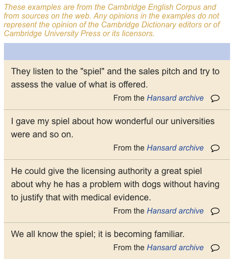 58 More Essays (Pages) on Essentials** of the Family Court Arena. **IMHO, as expressed 2009-2019. » Cambridge English Dictionary, ‘spiel’ (Cambridge Univ Press) ~ Screen Shot 2019-08-03 at 12.46.36 PM