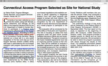 Some key categories: Marriage/Fatherhood promotion, access and visitation grants (see nearby image from 2002, in an “AFCC Newsletter”), and domestic violence or child abuse prevention grants. Also, where it comes to protecting children from abusive children (i.e., dependency courts), there’ve been movements (from the private sector) and funded processes to combine the policies in both jurisdictions: i.e., basic divorce and custody/parenting matters, no abuse reported or noticed — with courts designed to handle child abuse. Abuse of women but not limited to, including women who are mothers, sort of tagged along (as to funding, when it comes to the U.S. Health and Human Services agency (“HHS” as it’s been called since 1980 only) under CAPTA — Child Abuse Prevent and Treatment Act. … So we have one agency funding:
