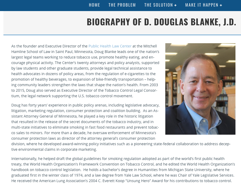 D. Douglas Blanke, J.D., of Action for Smoking & Health (in DC, 1967ff)| PHLC (under several diff’t names) is 1998ff in MN out of a law school.