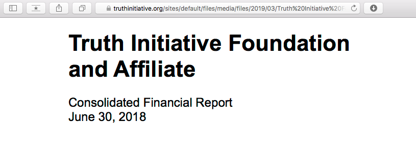 Truth Initiative Foundation & Affiliate Consolidated Audited Financial Report | Cover page (clean copy) #1 of 6 images (2019 Aug.15, when first accessed)
