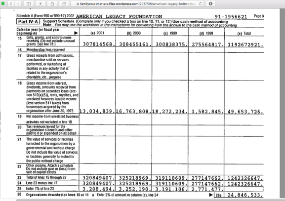 American Legacy Foundation (now called “Truth Initiative Foundation, “EIN#911956621) Form 990 FY2002, #1 of 13 excerpts (Screenshots taken July 30, 2017, accessed from FoundationCenter.org database), for posting Aug. 13, 2019. Gallery format, use navigation arrows or click on any image).