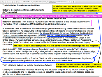 (Reminder: what’s now “Truth Initiative” was formerly “American Legacy Foundation” and before that, I just learned, “MSA Foundation” when first formed in 1999).