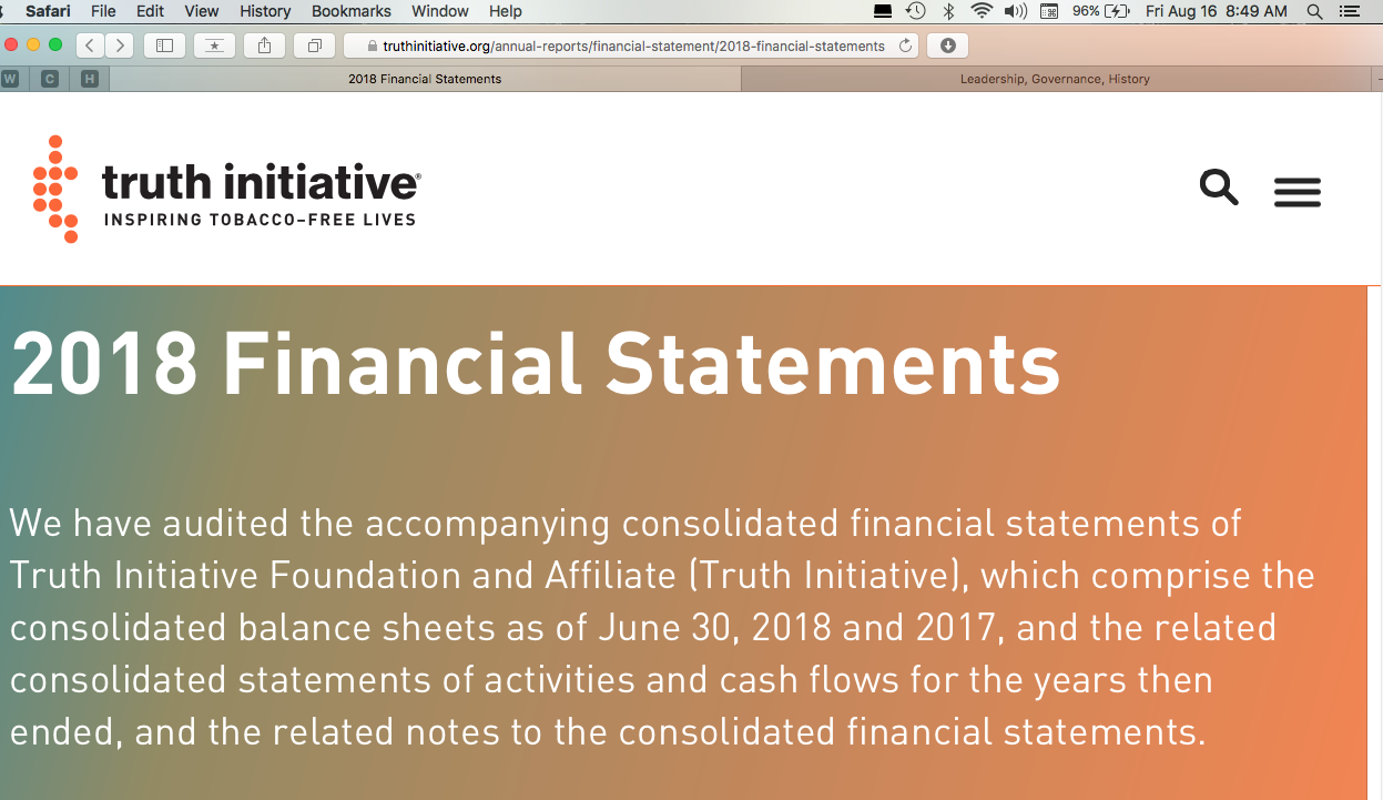 UPDATE: Truth Initiative Financial Statements (YEJune2018) Surface Within 24 Hours of My Post Noting Their Odd Absence (This Update Publ. Aug. 16, 2019) » Screen Shot 2019-08-16 at 8.49.27 AM