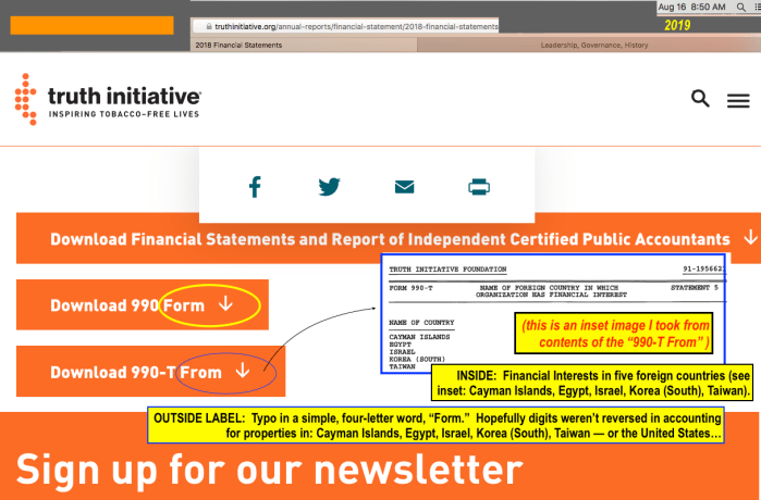 UPDATE: Truth Initiative Financial Statements (YEJune2018) Surface Within 24 Hours of My Post Noting Their Odd Absence (This Update Publ. Aug. 16, 2019) » Screen Shot 2019-08-16 at 8.50.00 AM