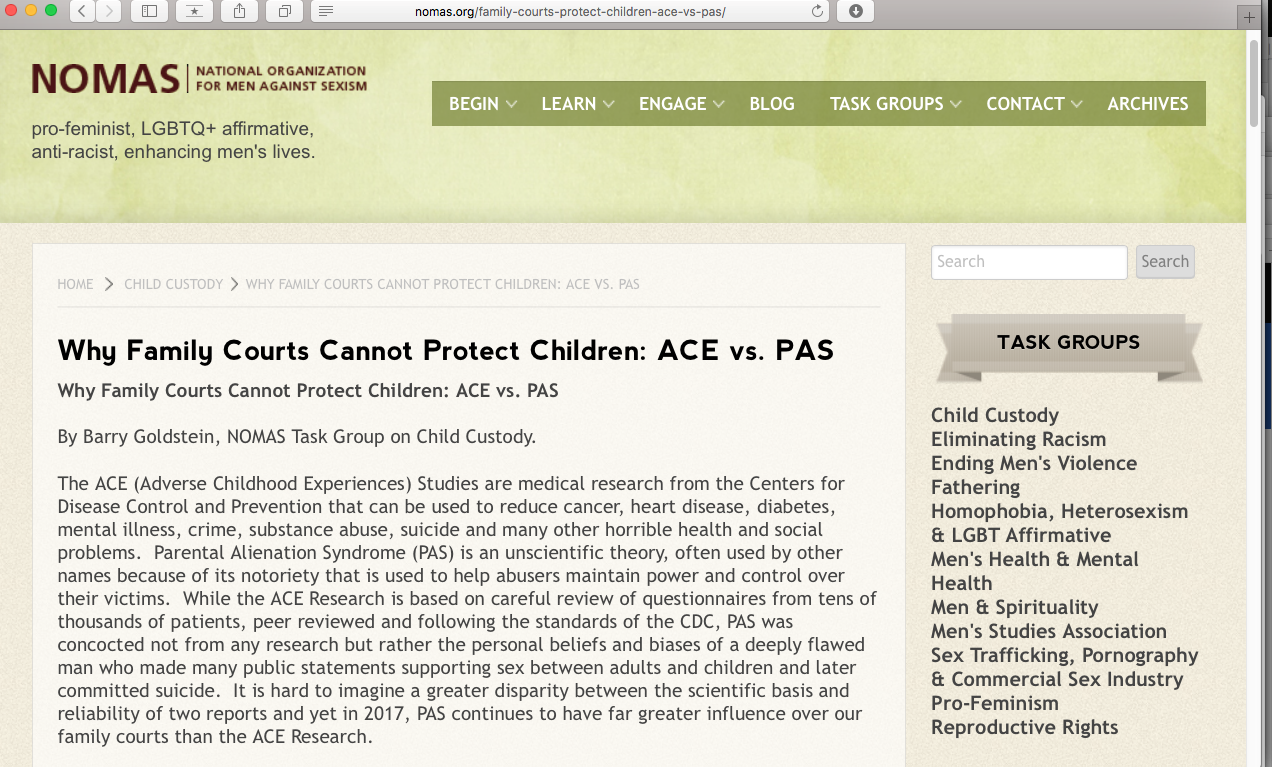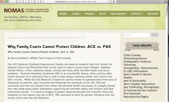 Barry Goldstein ℅ NOMAS cited after NCJFCJ FN30 to “Collective Memo of Concern about “Parental Alienation” to WHO (July 10, 2019). NOMAS comments on previous image this gallery.