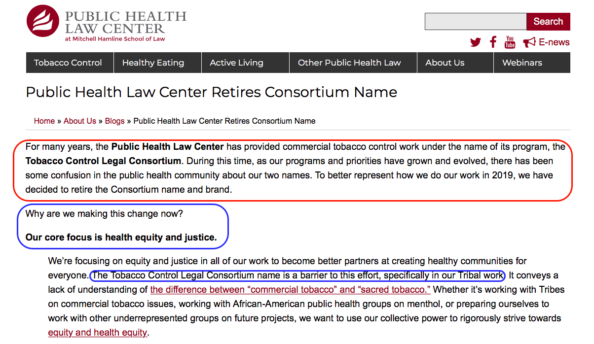 Public Health Law Center (‘org) @ MitchellHamline SOL | Tobacco MSA overview + (May2019) ‘We’re retiring that Tobacco Control Legal Consortium’ name -5 SShots 2019May28 Tue