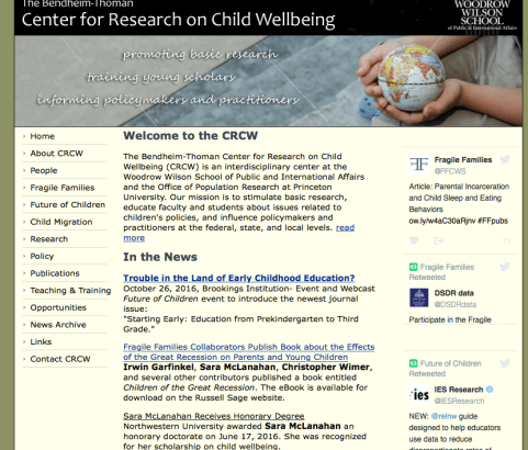 Fine print at the top showing donor or honoree: “The Bendheim-Thoman Center for Research on Child Wellbeing” in the Woodrow Wilson School of International Affairs at Princeton University (with the “Office of Population Research” as it says). It’s from here (with participation of Brookings Institution) that “the Future of Children” has a publication voice. CRCW at Princeton mirrors the terminology of that at Columbia and shows involved personnel (with known affiliations (Board of Directors) with other institutions. {{Previously Posted by me April 17, 2017, with the caption seen here. That page probably different by now. Find and bookmark it! I mean the from the Princeton.edu website!!//LGH 8-18-2019]]