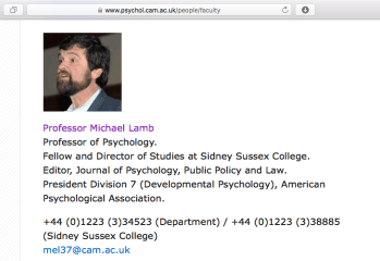 - Professor (of psychology) Michael Lamb, at Sidney Sussex College (University of Cambridge). Notice American credits.