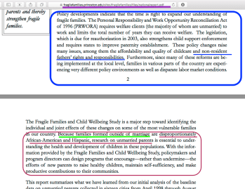 - FFCWS (found at Fatherhood’gov) Ten-page only 2003 Baseline Report, Front page, PRWORA excerpt, back page ~~Screen Shot 2019-08-18