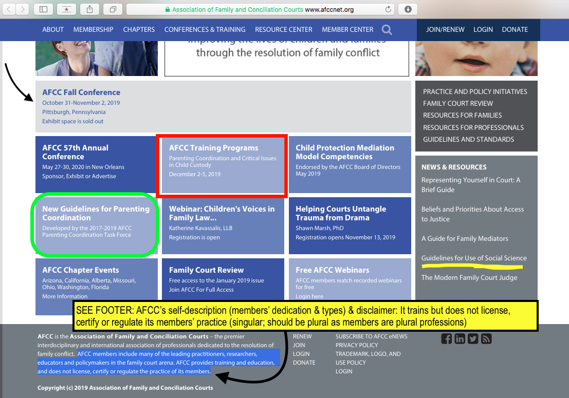 Trouble Navigating the pro/con “PAS” Conflict? Keep it simple: FIRST, Identify the AFCC Authors/Speakers/Presenters (often also Judges/Lawyers/Psychs, Program Operators, etc.)! THEN interrogate any remaining non-AFCC, Gov’t.-Funded Violence-Prevention Leadership.. (started July 30, 2019, Publ. Oct. 30). » AFCC HomePage |Activities,Footer (+DrillDown on Dec 2019, 4day (DebraKCarter|PhilipStahl) PARENT COORD conf in BALTIMORE | SShot 2019Oct23 PST Wed @4.53.00 PM 1