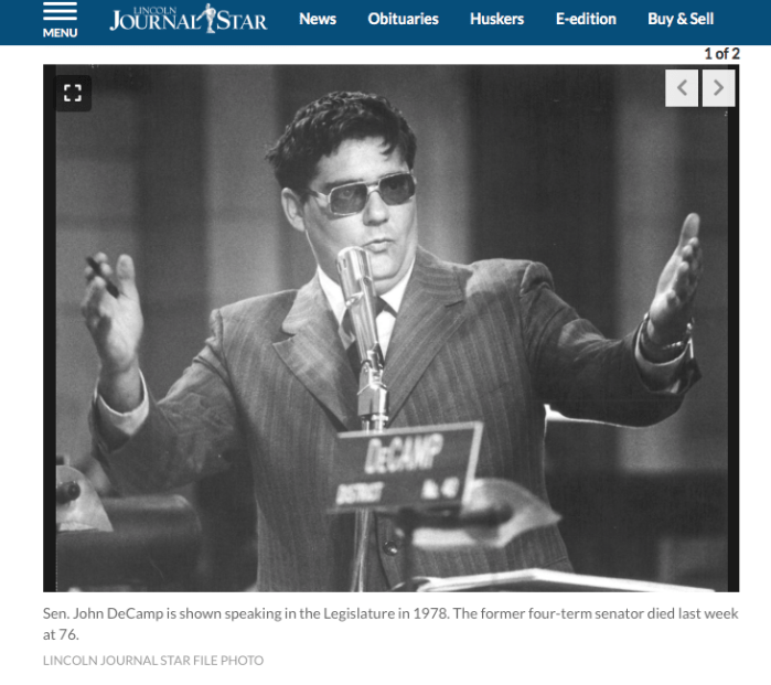 ‘Controversial former senator JohnDeCamp dies,’ Lincoln Journal-Star, JoAnne Young, Aug 1, 2017 (cf Franklin Coverup)~~2 SShots 2019Oct26 Sat PST