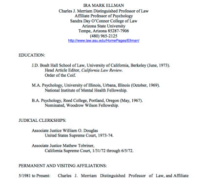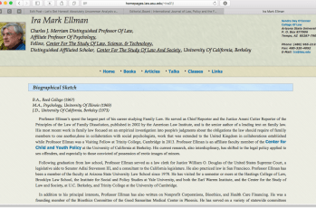 Professor Ira Mark Ellman (<~~C.V. ; and if url is shortened, faculty page at ASU). (Psychology B.A. Oregon, 1967, Psychology M.A. Psychology, U Illinois- Urbana (NIMH fellowship), 1969; Law J.D. UCBerkeley-Boalt School of Law (Order of the Coif, edited Calif. Law Review) 1973. READ THE C.V.!