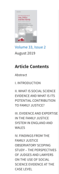 (Introducing Social Science Evidence in Family Court Decision-making and Adjudication: Evidence from England and Wales. Article Contents (from sidebar).