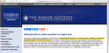 - Werner Institute for Negotiation and Conflict Resolution at Creighton University School of Law (Omaha, Nebraska), (2005ff, website says)