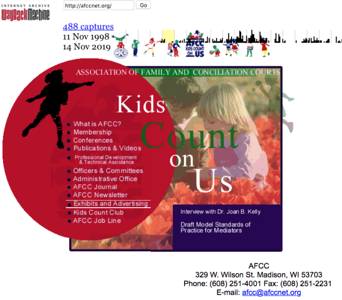 “AFCCnet.org/About/About-AFCC” is (Still) Long on Labels, Short on Content, Cleverly Obscuring What Its (Only Eight) Featured Collaborators Have in Common… (Publ. Nov. 23, 2019). » AFCC Website, WayBackMachine (EARLY!) ~~>2019Nov22 Fri PST @2.04.44 PM