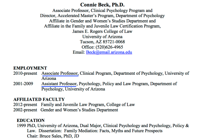 Oh, Arizona: Mind Your Behavior! (The Career AFCC Academics’ Dilemma: “To Admit, or Not to Admit?”) Nov. 25, 2019 » Connie Beck PhD (Psych) (Beck,CJA) UnivAZ Tucson ~~ Faculty Pg & CV~> AFCC NOT undercover (See Also Bruce D Sales PhD,JD (1960s,1973) mentor ~~19 Screen Shot 2019-11-08 at 4.06.28 PM 3