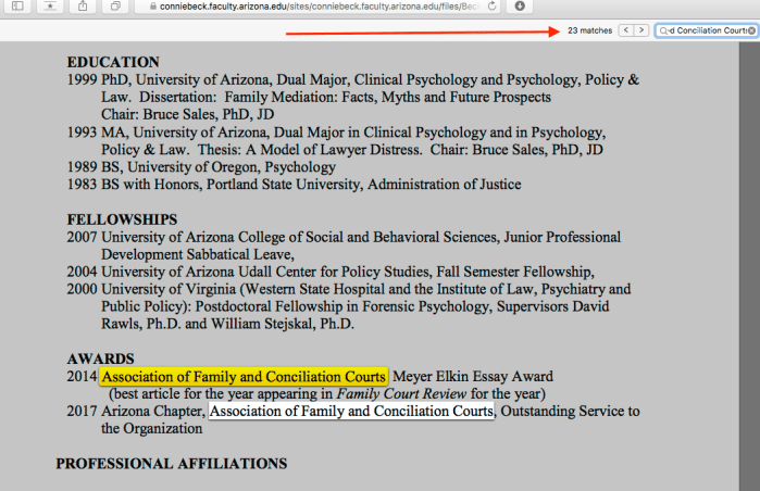 Oh, Arizona: Mind Your Behavior! (The Career AFCC Academics’ Dilemma: “To Admit, or Not to Admit?”) Nov. 25, 2019 » Connie Beck PhD (Psych) (Beck,CJA) UnivAZ Tucson ~~ Faculty Pg & CV~> AFCC NOT undercover (See Also Bruce D Sales PhD,JD (1960s,1973) mentor ~~19 Screen Shot 2019-11-08 at 4.08.12 PM 5