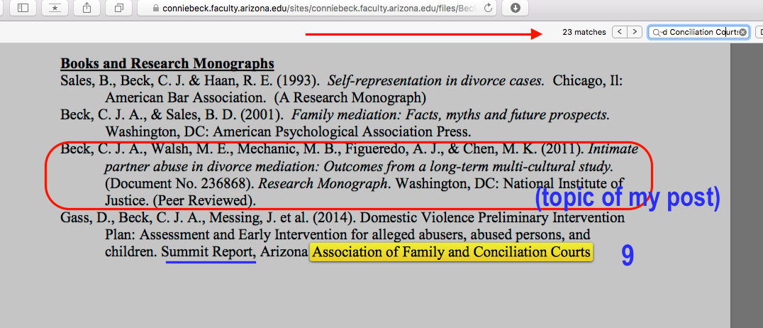 Oh, Arizona: Mind Your Behavior! (The Career AFCC Academics’ Dilemma: “To Admit, or Not to Admit?”) Nov. 25, 2019 » Connie Beck PhD (Psych) (Beck,CJA) UnivAZ Tucson ~~ Faculty Pg & CV~> AFCC NOT undercover (See Also Bruce D Sales PhD,JD (1960s,1973) mentor ~~19 Screen Shot 2019-11-08 at 4.09.33 PM 8