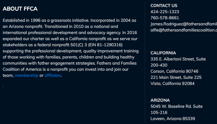 FFCA screenshots Nov 14, 2019 (bottom, #3 of 3, also quoted in my ‘Arizona’ post today, shortlink ending “bzx”). Footer info admits to EIN 81-1290316