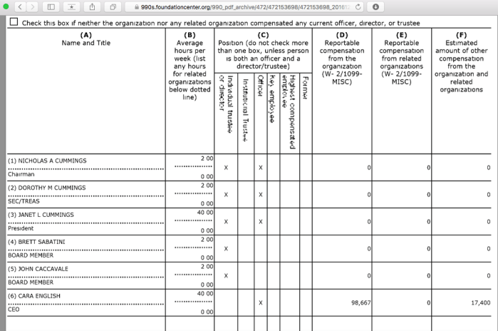 CGI-BH EIN#472153698, 990 FY2017 excerpts ~~10 SShots 2019Dec06 Fri PST (showing Board of Directors FY2017)