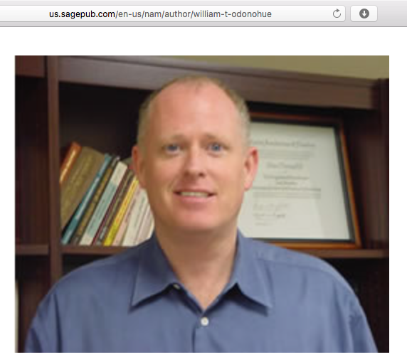 Three Tax-exempt Cummings Entities (Inc. 1994 and 2004 (co-located) in Reno, NV, and 2014 in Phoenix, AZ) and Their Family-Controlled Personal Agenda: Taking Former Arizona State U’s ‘DBH’ Accreditation International, Con’td. (#2 in a Pipeline, Publ. Dec. 16, 2019). » Wm. O’Donohue headshot from Sage Public (Undated) ~ Screen Shot 2019-12-16 at 1.01.02 PM