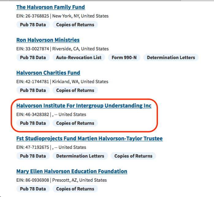 IRS Search reveals other ‘Halvorson’ EIN#s