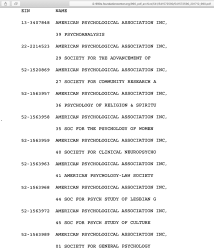 https://www.apa.org/about/division/officers/services/profiles Notice that this link doesn’t provide any handy EIN#s associated with each division, or mention whether they file their own ta returns (apparently not).