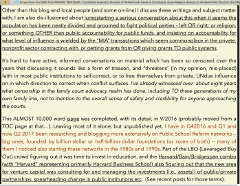 I hope as a teaching example it may alert people to government privatization and to pay closer attention to nonprofits involved in causes of interest and evaluate them based on their provided (or, if not provided where should be, on that) “financials.” The time invested will be not be wasted!