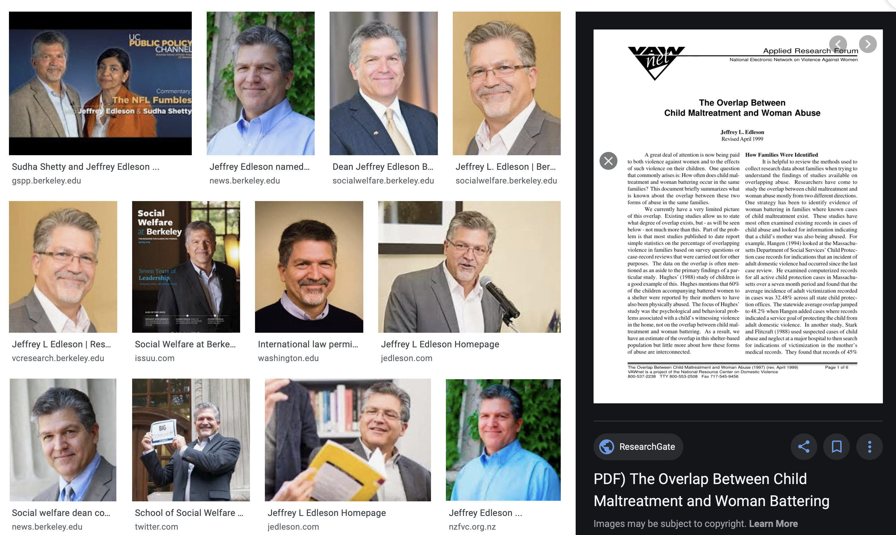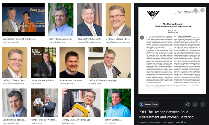 (Jeffrey Edleson Google Srch results (images, notice the various domain-names (urls) & classic piece off to right), @ May 29, 2020