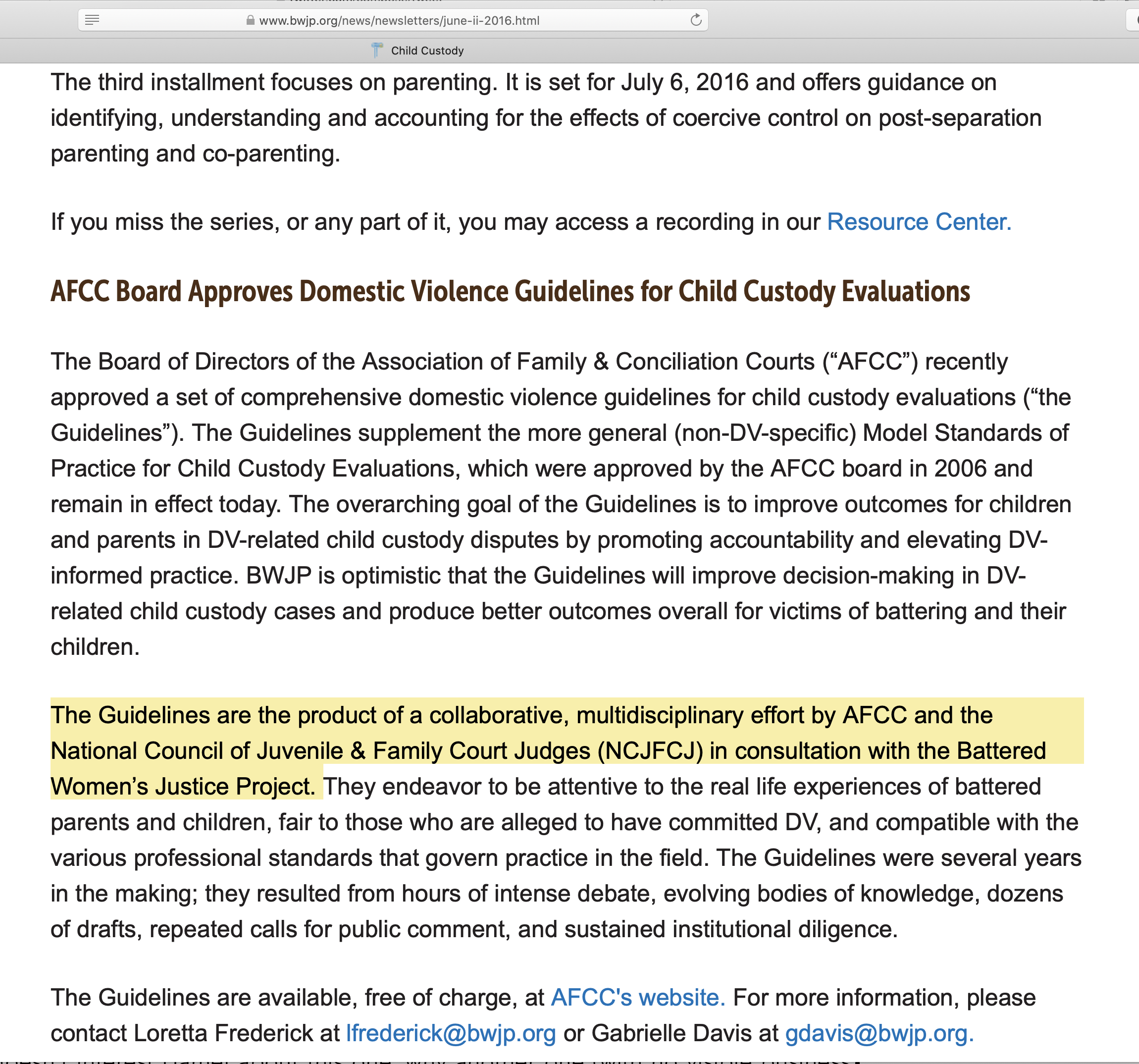 “BWJP’s 2016 Nat’l Child Custody Project admits collab w AFCC and NCJFCJ (& it’s a DVRN entity)~~Viewed 2020June25 ThuPST @ 1.12.55 PM” (Bottom of page)