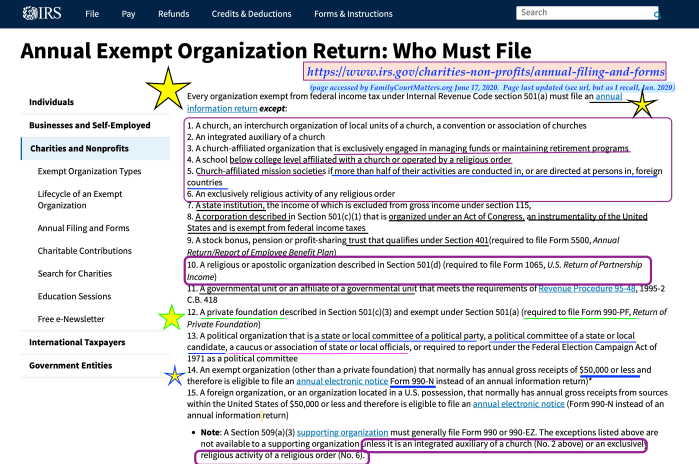 …Think About It: Will Any of These EVER Admit to AFCC’s Influence AND US-based Fatherhood | Access Visitation agenda for the (AFCC-promoted, specialized) Family Courts? (My Sentiments + Evidence May 29, 2020, Updated and Published June 26). » In the US~~>IRS’GOV’ WHO, exempt from Federal Income Taxes, MUST FILE ANNUALY<~~ (Except these 15 categories….) SShot 2020Jun17 Wed PST @ 3.56.09 PM