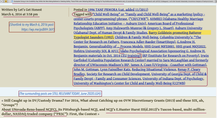 …Think About It: Will Any of These EVER Admit to AFCC’s Influence AND US-based Fatherhood | Access Visitation agenda for the (AFCC-promoted, specialized) Family Courts? (My Sentiments + Evidence May 29, 2020, Updated and Published June 26). » LGH|FCM Post 2016Mar6 post (-36Y) ‘Dumpster-Diving in Credibility Gap’ dealt also w Gottmans + Relatnship Research Institute (form 990s)’~~Viewed 2020June24 Wed PST @ 3.47.37 PM