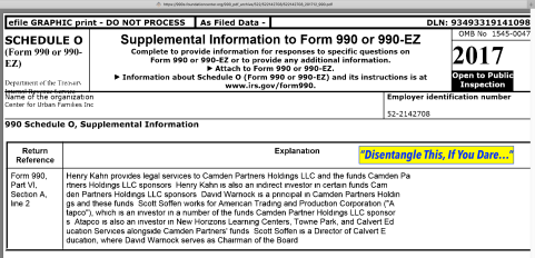 Below, the 5th and 6th images reference a nonprofit in Baltimore, “Center For Urban Families” which despite a name change to now ending with the word “Families,” began with the focus on “Fathers.” My filenames indicate the “CBMA” images were March, 2018, and the CFUF ones, June, 2017. I’ve been saying this, generally, for years now… For each famous name, where are their financials, and what stories do THEY tell?