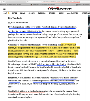 One chairman’s background (LinkedIn) I looked at included six years volunteering at Baltimore Court Appointed Special Advocates (CASA) Programs, which relates to the National CASA (“National Court Appointed Special Advocate/Guardian ad Litem (CASA/GAL) Association”) which, oddly, chose a major media company for its latest (well, FY2018 shown) campaign based in Las Vegas, Nevada, state where illegal prostitution (far larger business than the legalized version, says Wikipedia) is high — and child-trafficking. The head of that media company (an LLC, not a tax-exempt organization) has been characterized (I’ll quote it) in 2004 (and since) as “huckster, dealmaker, and fixer extraordinaire,” “the most powerful unelected man in Nevada,” and with clear implications of mob connections.