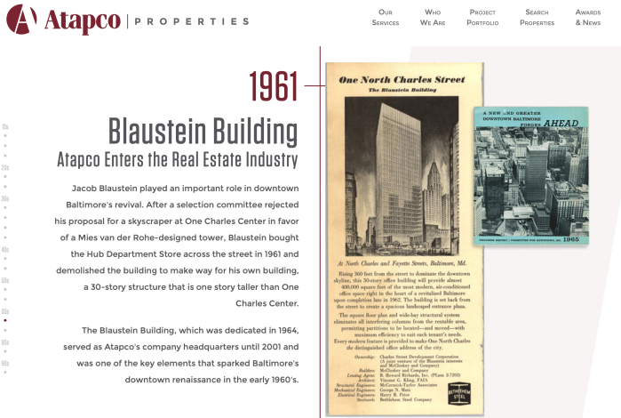 style=”background-color:#ebeefe;font-family:arial narrow;font-size:small;”>Atapco Properties Timeline (viewed July 5, 2020 in context of one of CFUF Board Members shown on tax return (SeeAlso Henry D. Kahn of HoganLovells.com, and David L. Warnock of (his own foundation), plus (generally) the Abell Foundation