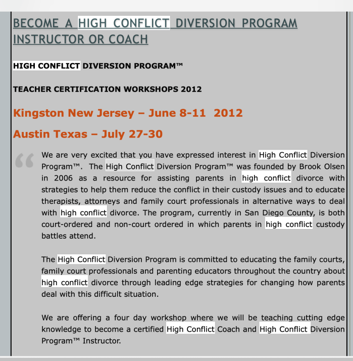 Screenshot from my May 10, 2012 post on trademarking of “High-Conflict.” image is darkened because I searched the term on my own post. Easier to read on the post: shortlink is https://wp.me/psBXH-14I…