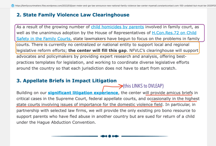 Non-entity** ‘NATIONAL Safe Parents Coalition’ + non-entity ‘NATIONAL Family Violence Law Center’ (actually, GWU.edu) = WHOSE money behind attempt to (inter)NATIONALIZE DV, CA and the FamilyCourts? [From Feb. 6, 2022, post moved here April. 1]. » Joan Meier and GW Law Announce New National Family Violence Law Center (MyEmail.ConstantContact.com, 100% undated but must be 2019 (2020 add-on?) ~~2022.Apr.01 Fri PST @ 5.38.47 PM
