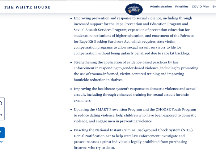 WhiteHouse.Gov (March 16, 2022) VAWA Reauthorization Fact Sheet for my mid-April, 2022, post. Image #2 of 2.