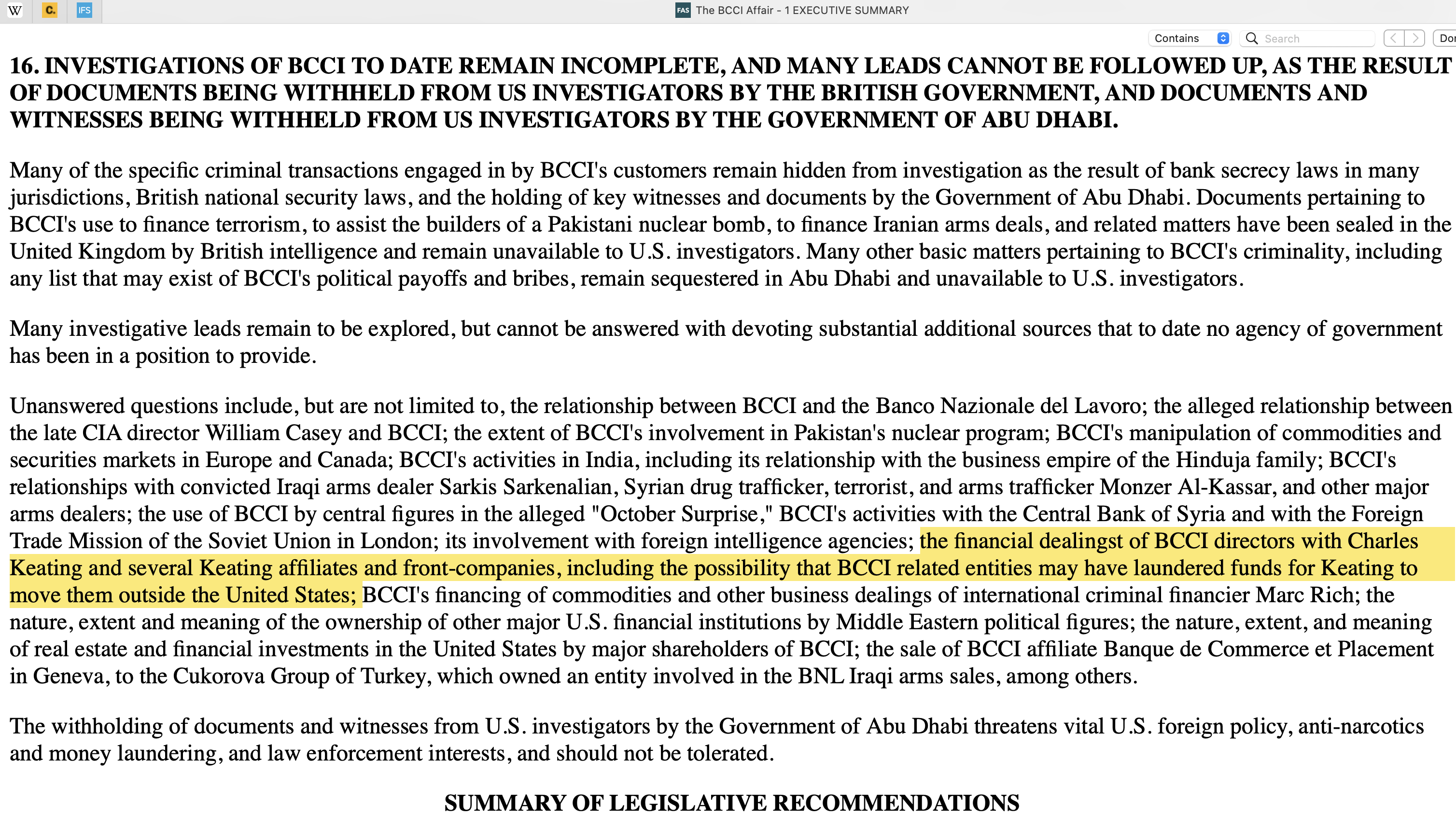 https://irp.fas.org/congress/1992_rpt/bcci/01exec.htm (about the BCCI, one long page with numbered paragraphs. Image #2 of 2, the last para. (16) before recommendations. Good to know! LGH 2022.Apr.20