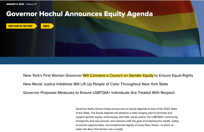 …This week Governor Hochul also announced that she is launching an Equity Agenda. (<~~broken link as of Apr. 2022) Here are some of the components: