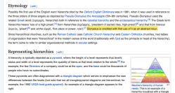 By the way, the root sense of “hierarchy,” even Wikipedia admits, has to do with priesthood, and one representation is the pyramid or triangle. Britannica Dictionary, or Etymonline: All make reference to religion, priests, church, and Etymonline even has a diagram: arkhein (to rule) + hiera (sacred rites) = hierarches (high priest, presiding over the sacred rites).