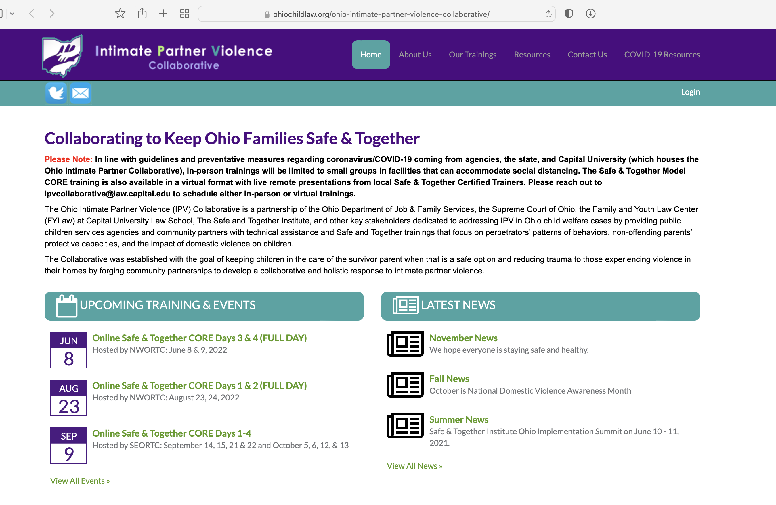 OhioChildLaw.org/Ohio-Intimate-Partner-Violence-Collaborative (Image: main page; I linked to “trainings”