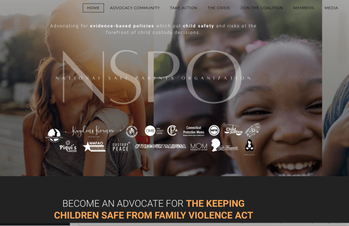 Now “NationalSafeParents.org” is billing itself (home page) as “NSPO.” See top menu, notice orange print messages at bottom (Image 1 of several, July 20, 2022)