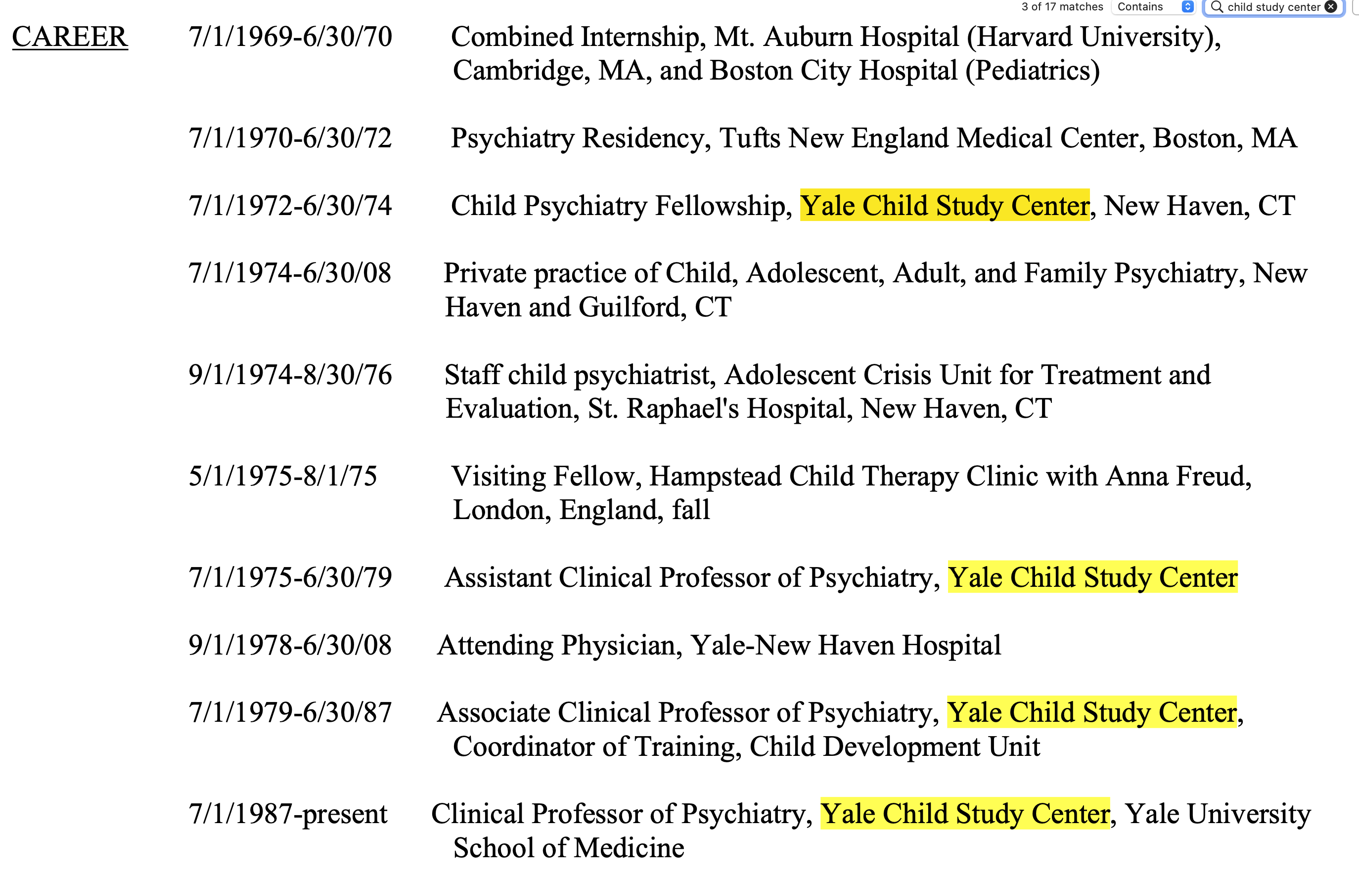Take a look at Kyle Pruett MD’s c.v. (<–℅ his personal website's main link), how often you see Yale Child Study Center” Besides how often those three words (“Yale Child Study Center”) and some variation of “father” (Fathers, fatherhood, fathering, etc.) feature on his c.v., [2 images, uploaded 11Aug2022]