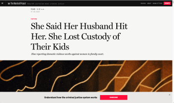 My post title features the article’s descriptive subtitle; its main title is: “She Says Her Husband Hit Her: She Lost Custody of Their Kids” published July 8, 2020, by The Marshall Project in association with Long Reads, which is now run by Automattic, Inc. (originator of WordPress).