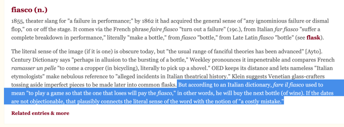 https://www.etymonline.com/word/fiasco for post July 8, 2022 (“-eD2”). Maybe I shouldn’t be calling them family court fiascoes, except, see highlit part! //LGH