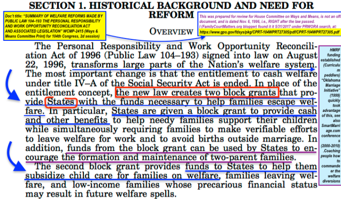 About My Blog Motto (formerly on Vital Info/Sticky Links post, moved here May 26, 2017) » 1996Nov House W&M PRWORA Summary (excerpt shows 2 block grants) ScrShot 2017-05-31 at 3.42PM
